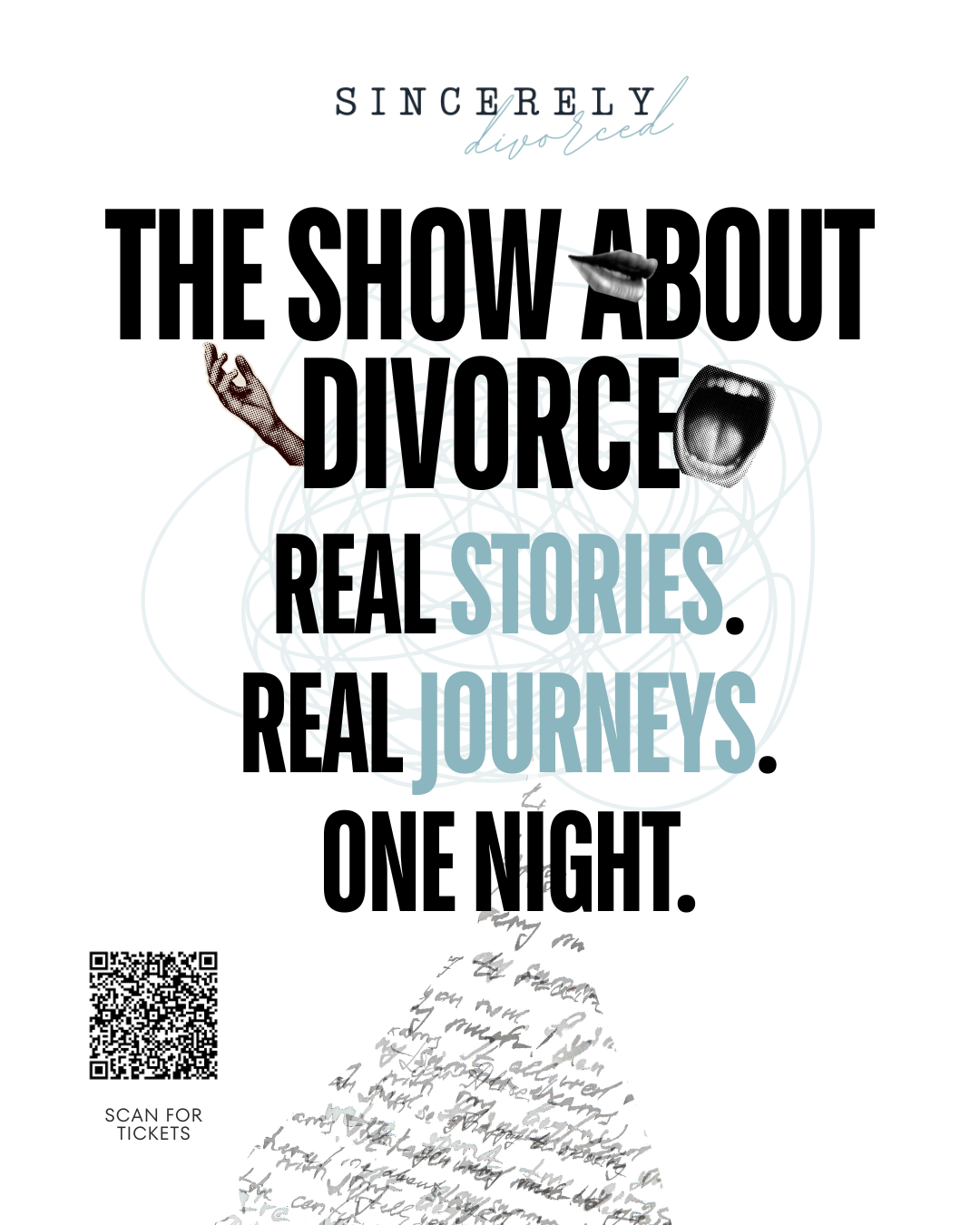 The Show About Divorce is a Sincerely, Divorced in-person event that disrupts the stigma of divorce, empowers individuals, and builds community through the sharing of personal stories about to divorce and rebuilding.